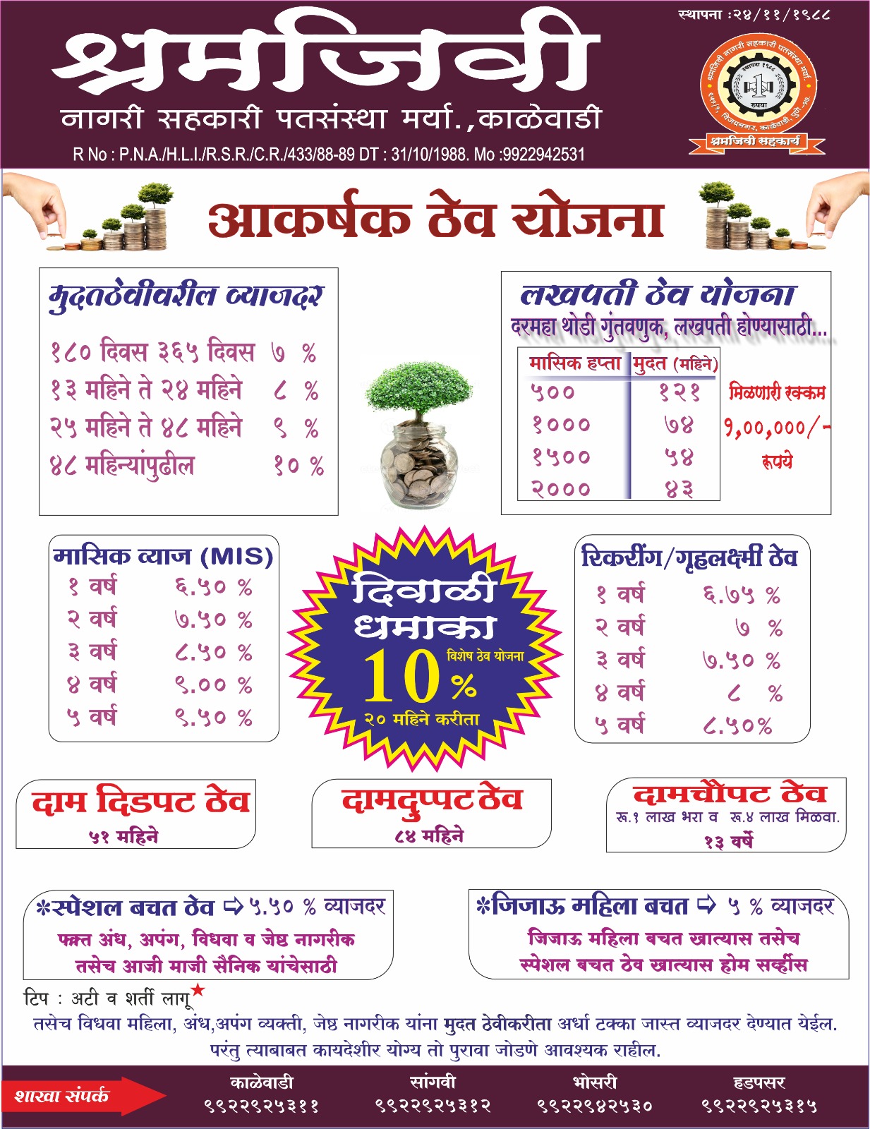 महिन्यातील दुसरा व चौथा शनिवार तसेच प्रत्येक रविवारी संस्थेचे कामकाज बंद राहील.